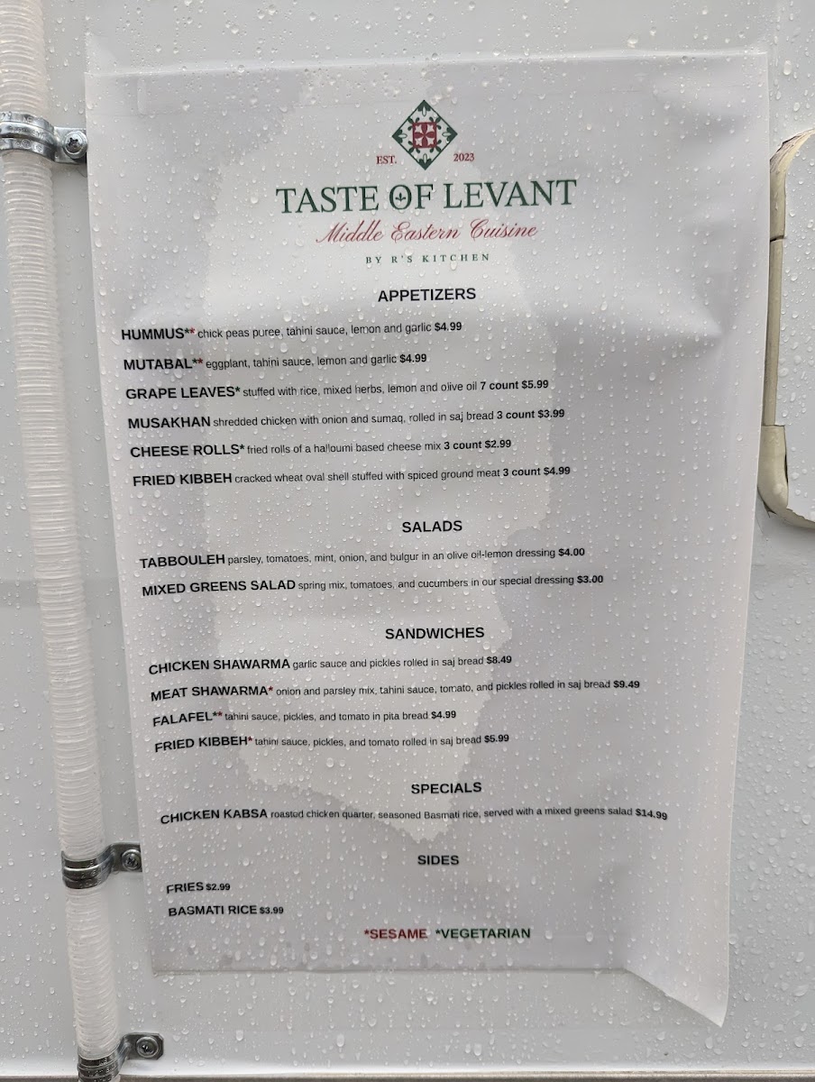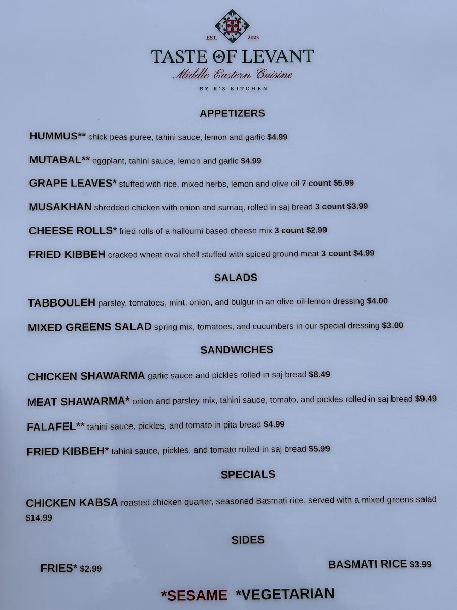 Taste Of Levant Menu
